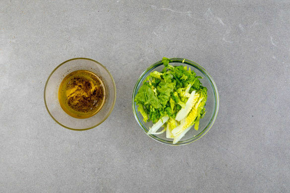 Den Salat in feine Streifen schneiden. Je 2EL Senf, Olivenöl, Essig und Wasser mit je 1 kräftigen Prise Salz, Pfeffer und Zucker verrühren und den Salat untermengen. Die Kartoffeln aus dem Ofen nehmen, etwas aufschneiden und nach Belieben mit Butter und Salz garnieren. Das Fleisch in Tranchen schneiden, mit den Kartoffeln und dem Relish anrichten und servieren.