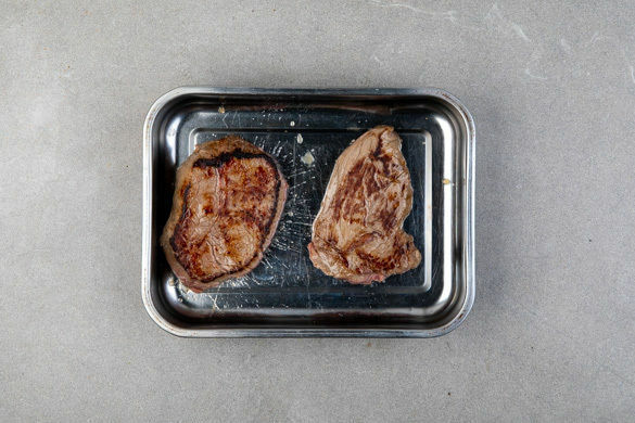 Das Fleisch trocken tupfen und in einer mittelgroßen Pfanne mit 1EL Olivenöl bei starker Hitze auf jeder Seite 1–2Min. scharf anbraten. Mit Salz und Pfeffer würzen, in eine Auflaufform geben und im Ofen 4–6Min. oder bis zum gewünschten Garpunkt nachgaren. Aus dem Ofen nehmen und 2–3Min. ruhen lassen. Tipp: Der Fleischsaft kann unter das Relish gemischt werden.