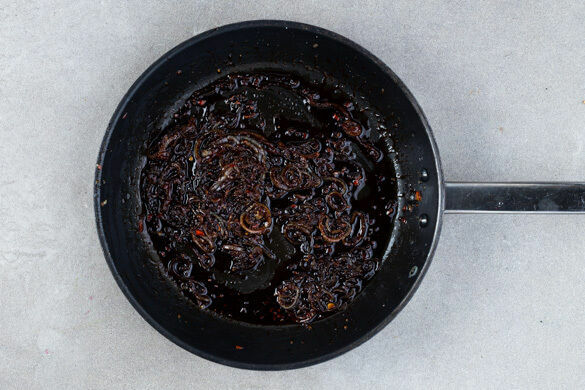 Die Zwiebeln, den Knoblauch und die Peperoni in einer großen Pfanne mit 2EL Olivenöl bei mittlerer Hitze 2–3Min. anbraten. Die Hitze reduzieren und das Ketjap Manis, 3EL Ketchup und ½TL Zucker unterrühren. Bei Bedarf etwas Wasser hinzufügen. Tipp: Wenn Kinder mitessen, die Peperoni weglassen und später nur das eigene Sandwich garnieren.