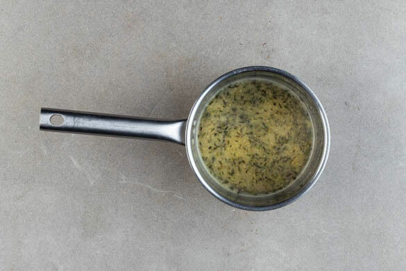 Den Rosmarin in einem kleinen Topf mit 2EL Butter bei niedriger bis mittlerer Hitze 30Sek.–1Min. sanft anbraten. 1TL Senf und 2TL Mehl unterrühren, dann mit der Brühe ablöschen, aufkochen und 2–4Min. einköcheln lassen. Die Sauce ggf. mit mehr Brühgewürz und Senf abschmecken und bei niedrigster Hitze warm halten.