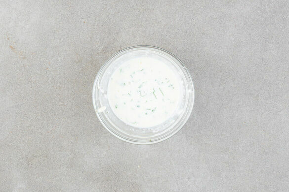 Den Koriander samt Stängeln grob schneiden. Die ½ des grob geschnittenen Korianders fein schneiden und mit 2EL Mayonnaise und 1EL Ananassaft verrühren.