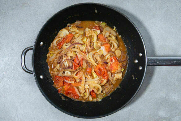 Während die Pasta kocht, den Knoblauch, den Fenchel und die Tomaten in die Pfanne geben. Die Hitze etwas erhöhen und das Gemüse abgedeckt 7–8Min. garen, bis die Tomaten wich werden. Dabei ab und an umrühren und bei Bedarf mit einer Kelle etwas Kochwasser von der Pasta hinzufügen.