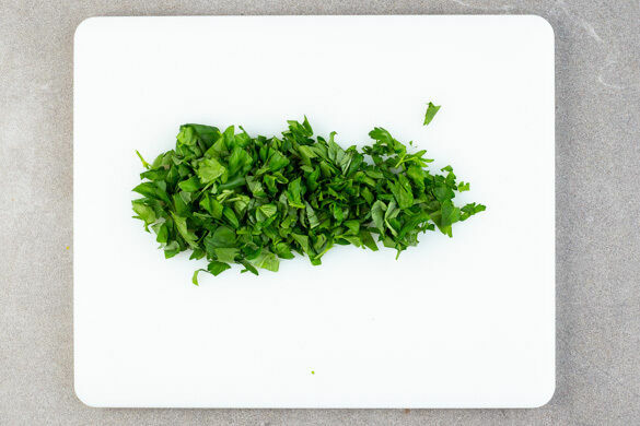 Die Basilikumblätter abzupfen und fein schneiden. Die Lasagne mit dem gehackten Basilikum garnieren und servieren.