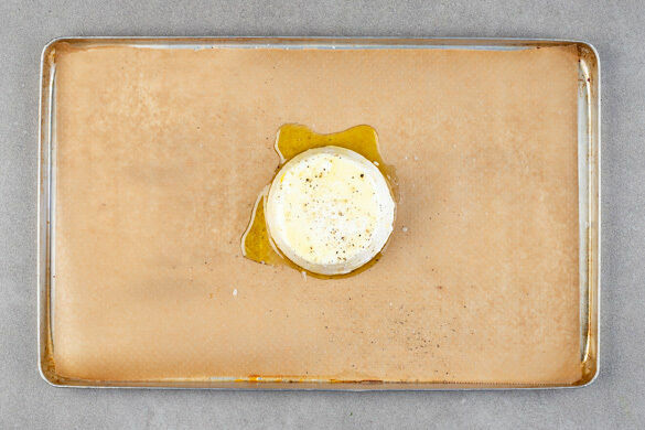 Die Ricottas abtropfen lassen, dann mittig auf ein mit Backpapier ausgelegtes Backblech setzen. Mit 2EL Olivenöl beträufeln und mit je 1 Prise Salz und Pfeffer würzen. Die Ricottas 15–18Min. im Ofen backen, bis sie weich und leicht gebräunt sind.