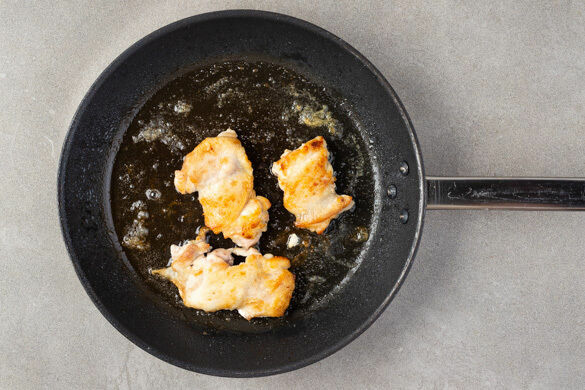 Das Fleisch trocken tupfen, mit je ½TL Salz und Pfeffer rundum würzen und dann mit 2EL Mehl vermengen. Das Fleisch in einer großen Pfanne mit 2EL Pflanzenöl bei sehr starker Hitze auf jeder Seite 1–2Min. goldbraun anbraten, dann aus der Pfanne nehmen und beiseitestellen. Das Fleisch muss noch nicht gar sein.
