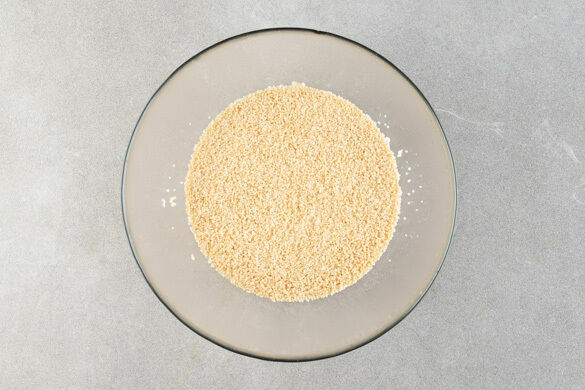 In einem Wasserkocher 600ml Wasser aufkochen. Den Couscous in einer hitzebeständigen Schüssel oder in einem kleinen Topf mit 1TL Salz und 1 Prise Pfeffer mischen, dann mit dem kochenden Wasser übergießen, umrühren und abgedeckt 6–8Min. quellen lassen.