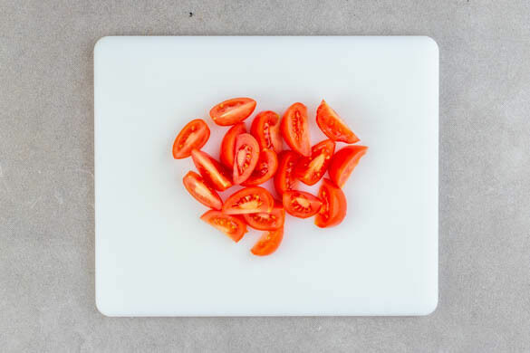 Die Tomaten in jeweils 6–8 Spalten schneiden.