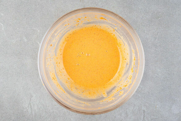 Die mexikanische Gewürzmischung mit 80g Mehl, 100ml Wasser und je ½TL Salz und Pfeffer zu einem zähflüssigen Teig verrühren. Ggf. etwas Wasser hinzufügen, falls der Teig zu dickflüssig ist.