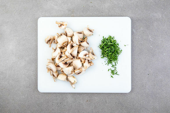 Die Pilze ggf. säubern und je nach Größe vierteln oder sechsteln. Die Petersilie samt Stängeln fein hacken.