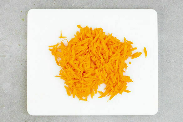 Die Karotten ggf. schälen und mit einer Küchenreibe grob raspeln.
