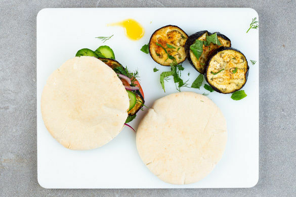 In den Straßen Tel Avivs bekommt man diesen leckeren Klassiker der Levante-Küche an jeder Ecke. Unsere Köchin Elisabeth hat hier ein feines Rezept ausgetüftelt, das ihre Version des „Sabich“ heute auf unsere Tische zaubert: warmes Pitabrot gefüllt mit weich gebratenen Auberginenscheiben, cremigem Hummus, knackig-frischem Gemüse und Kräutern sowie einem aromatischen Dip mit Mangochutney. Können wir nur empfehlen!