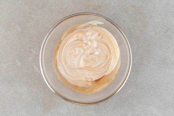 Den Joghurt mit der Granatapfelmelasse, 2TL Olivenöl und je 1 kräftigen Prise Salz und Pfeffer glatt rühren.