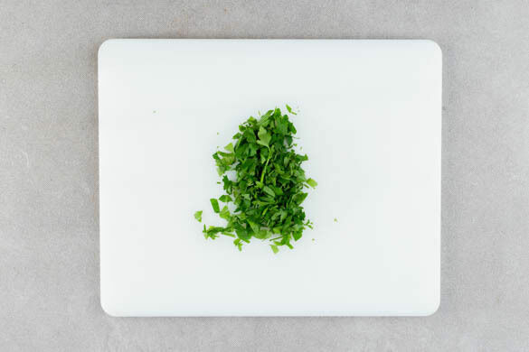 Die Petersilie samt Stängeln fein hacken.