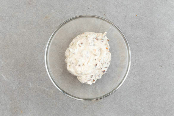 Die getrockneten Tomaten grob schneiden. Die ½ des Käses fein reiben. Den Knoblauch schälen und ebenfalls fein reiben. Die Crème fraîche mit den getrockneten Tomaten, dem geriebenen Käse, dem Knoblauch und 1EL Olivenöl verrühren. Den Aufstrich mit Salz und Pfeffer abschmecken.