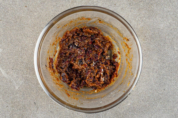 Den Backofen auf 240°C (220°C Umluft) vorheizen. Den Käse fein reiben und mit den Cranberrys und dem Chutney vermengen.