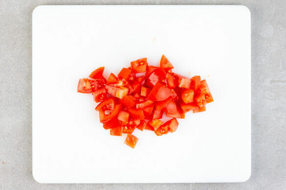 Die Tomaten in 1–2cm große Würfel schneiden.