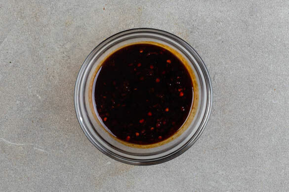 Den Ketjap Manis und das Sambal Badjak verrühren. Die Eier schälen und halbieren. Die Hackfleischsuppe auf tiefe Teller verteilen. Die Eier darauf anrichten, dann die Suppe mit der Sauce beträufeln und servieren.