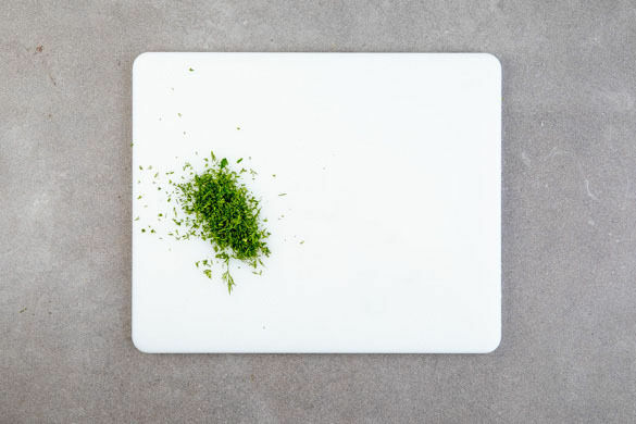 Den Dill samt Stängeln fein schneiden. Das Linsenpüree auf Teller verteilen, das Fleisch in Tranchen schneiden und darauf anrichten. Mit dem Dill und ggf. übrigem Paprikapulver garnieren und mit den Crudités servieren.