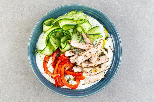 Die Gewürzmischung Za’atar ist fester Bestandteil der arabischen und nordafrikanischen Küche. Wichtigste Geschmacksgeber sind wilder Thymian, gerösteter Sesam und säuerlicher Sumach, und genau darin wendest du heute die saftigen Steakstreifen. Sie werden serviert auf einem erfrischenden Minzejoghurt, dazu gibt es einen feinen Gurkensalat mit frischem Dill und gebratener Paprika. Leicht, lecker und lässig schnell gemacht!