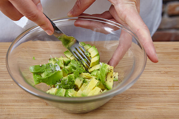 Die Avocado halbieren, den Kern entfernen und mit Hilfe eines Löffels das Fruchtfleisch aus der Schale lösen. Mit einer Gabel die Avocado grob zerdrücken, mit Salz und Pfeffer abschmecken. Zu den Tortillas und dem Eintopf servieren.