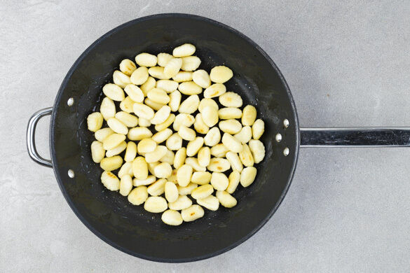 Die Gnocchi in einer großen Pfanne mit 1EL Olivenöl bei starker Hitze 2–3Min. anbraten.