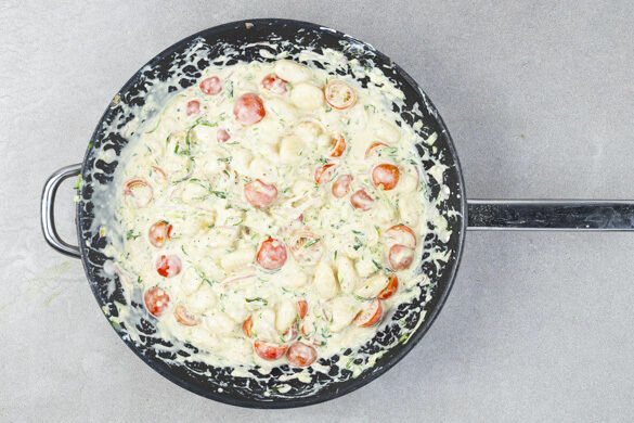 Heute haben wir ein schnelles und unkompliziertes Pfannengericht für dich: Die knusprig angebratenen Gnocchi werden mit geriebener Zucchini und einer cremig-feinen Sauce mit erfrischender Zitrone, Kirschtomaten und Basilikum serviert. Wenig Aufwand, viel Geschmack!