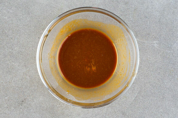 Die Misopaste mit 75ml Wasser, 4EL Honig, der ½ der Sojasauce und 2TL Mehl verrühren. In einem Wasserkocher ca. 1,5L Wasser zum Kochen bringen.
