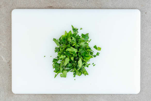 Die Petersilie samt Stängeln grob hacken. Die Kürbisspalten und die Pilz-Tomaten-Mischung mit dem Perlencouscous anrichten. Nach Belieben mit der Joghurtsauce beträufeln und mit der Petersilie garniert servieren.