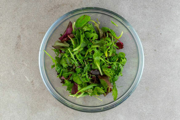 Die Granatapfelmelasse mit 2EL Olivenöl, 2TL Senf und je 1 Prise Salz und Pfeffer zu einem Dressing verrühren. Den Salat mit dem Dressing vermengen, ggf. mit Salz und Pfeffer nachwürzen.