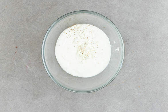 Die Pistazien in derselben Pfanne ohne Zugabe von Fett bei mittlerer Hitze in 2–4Min. goldbraun anrösten. Den Knoblauch aus der Schale drücken und mit dem Feta und 3EL Joghurt in einem hohen Gefäß mit einem Stabmixer cremig pürieren. Anschließend den restlichen Joghurt unterrühren und die Fetasauce mit Salz und Pfeffer abschmecken.