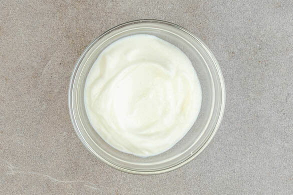 Den Knoblauch schälen und sehr fein würfeln oder durch eine Knoblauchpresse drücken, dann mit dem Joghurt verrühren und mit 1 Prise Salz würzen.