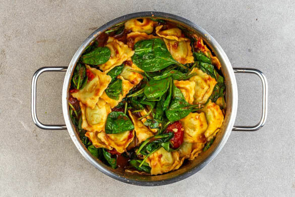 Wir möchten heute deine Geschmacksknospen so richtig ankurbeln – und das im Handumdrehen. Dieses Ensemble ist voll besetzt mit kulinarischem Charme: Herrliche Ricotta-Spinat-Tortelli in einer mit Chiliflocken aufgepeppten Sauce, die mit fruchtigen Kirschtomaten verzaubert. Sie wird schick abgerundet mit einem würzigen Knoblauch-Joghurt und frischer Minze. Super schnell, super cremig, super lecker. Guten Appetit!