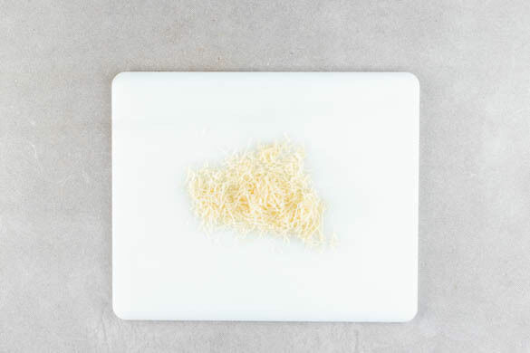 Den Käse grob reiben oder nach Belieben mit einem Sparschäler in dünne Scheiben hobeln.