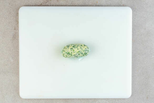 3EL Butter in eine kleine Schüssel geben und den Schnittlauch mithilfe einer Gabel untermischen. Mit Salz und Pfeffer abschmecken. Die Schnittlauch-Butter-Masse in Frischhaltefolie zu einer Rolle formen und diese für 10–15Min. in den Gefrier- oder Kühlschrank legen.