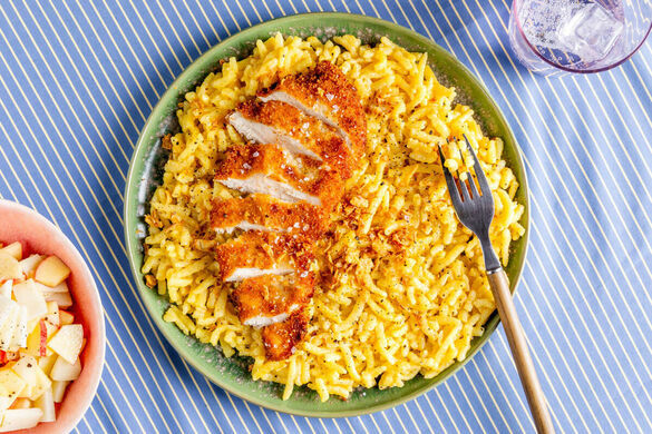 Special V3: Vegetarisches Hähnchenschnitzel an Trüffel-Käsespätzle & Apfel-Kohlrabi-Salat