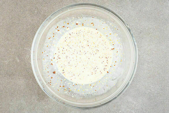 1EL Senf mit 2EL Mayonnaise, 2EL Essig, 2TL Wasser und 1TL Honig zu einem Dressing verrühren. Mit Salz und Pfeffer abschmecken.