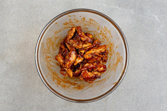 Das Fleisch in einer großen Pfanne mit 2EL Pflanzenöl bei mittlerer Hitze auf jeder Seite 4–5Min. anbraten, bis das Fleisch goldbraun und durch ist.