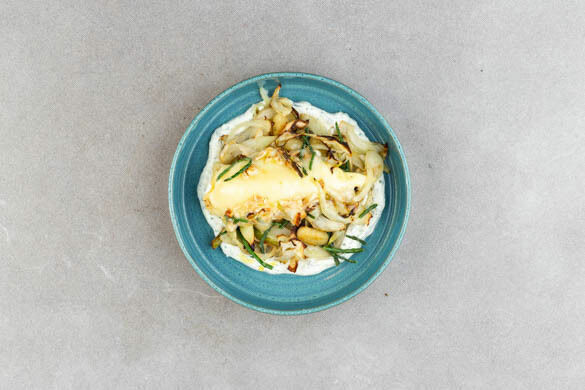 Von der Oberseite der Bries ca. 1cm abschneiden und die „offenen“ Bries in die gehackten Nüsse drücken. Nach ca. 15Min. Backzeit des Fenchels und der Gnocchi die Bries auflegen. Zusammen 12–15Min. weiterbacken, bis der Brie weich und leicht geschmolzen ist und Fenchel und Gnocchi gar sind. Aus dem Ofen nehmen, den Queller darauf verteilen und anwärmen.