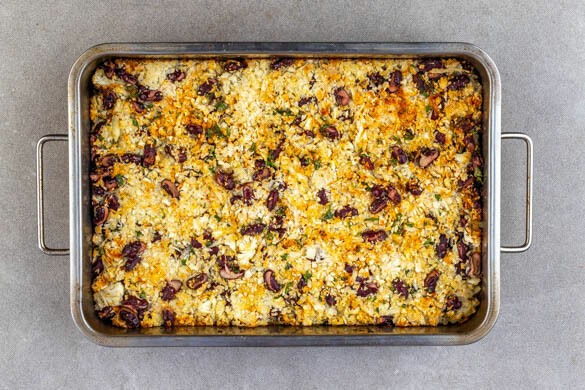 Die Bohnen, den Blumenkohlreis, die ½ des Korianders, das Brühgewürz, die ½ der Gewürzmischung und 6EL Olivenöl gründlich vermengen und in zwei großen Auflaufformen mit Alufolie abgedeckt ca. 10Min. im Ofen backen. Dann den Blumenkohl-Bohnen-Mix umrühren, glatt streichen und ohne Alufolie ca. 10Min. weiterbacken, bis er goldbraun und durchgegart ist.
