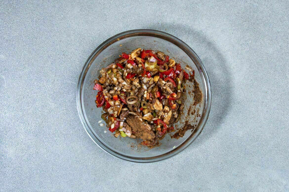 6EL Pflanzenöl in einer großen Pfanne bei starker Hitze erwärmen, bis es zu rauchen beginnt, dann das heiße Öl vorsichtig in die Schüssel mit den vorbereiteten Zutaten gießen. Das Peperoniöl zum Auskühlen beiseitestellen. Tipp: Indem das Öl erhitzt wird, nimmt es den Geschmack der Zutaten besonders gut auf und verstärkt diese. Sei kreativ und probiere verschiedene Kombinationen aus!