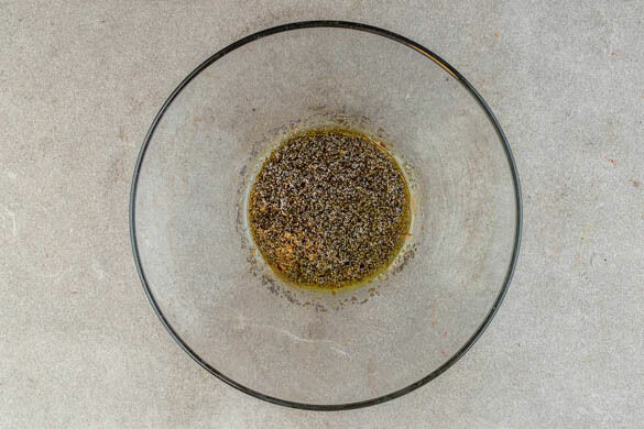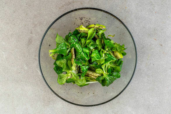Den Mohn mit 2EL Olivenöl, 2EL Balsamicoessig und 2TL Honig zu einem Dressing verrühren.