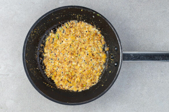 Die geröstete Toastscheibe zerkrümeln und in derselben Pfanne mit 1 Prise Salz und ggf. etwas Kräuterbutter bei mittlerer Hitze 2–3Min. anrösten. Den übrigen Toast 3–4Min. im Ofen rösten oder toasten. Das Cassoulet mit Salz und Pfeffer abschmecken und auf Teller verteilen, mit den Toastkrumen anrichten und mit den Toastscheiben und der Kräuterbutter servieren.
