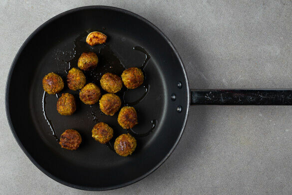 Die Falafeln in einer mittelgroßen Pfanne mit 1EL Olivenöl bei mittlerer Hitze 2–3Min. anbraten. Dann wenden, den Knoblauch hinzugeben und die Falafeln weitere 2–3Min. braten, bis sie gar sind. Der Knoblauch sollte leicht gebräunt sind. Den Knoblauch herausnehmen, die Falafeln bis zum Servieren in der Pfanne warm halten.