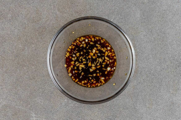 Die Limetten halbieren und auspressen. Den Knoblauch schälen, fein würfeln und mit dem Limettensaft, 4EL Wasser, 4TL Ketjap Manis und 1TL Zucker verrühren. Mit Salz abschmecken und ggf. esslöffelweise Wasser zugeben.