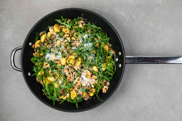 So ein schnelles und leckeres Rezept mit Gnocchi und wärmenden Aromen ist nach einem langen Tag genau das richtige! Gebratene Pilze, knusprige Walnüsse und frischer Thymian sind das Herzstück dieses Rezepts. Dazu eine Handvoll Rucola für die zusätzliche Portion Grünzeug und Geschmack sowie ein paar Spritzer frisch gepresster Zitronensaft für die gute Laune – perfekt!
