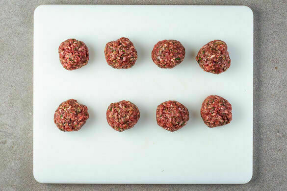 Die Hackbällchen in einer großen Pfanne mit 2EL Olivenöl bei mittlerer Hitze rundum 8–12Min. anbraten, bis sie goldbraun und gar sind.