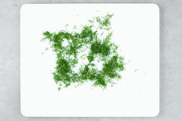 Die Dillspitzen abzupfen und fein schneiden. Das Bohnengemüse auf Teller verteilen und die Fischfilets darauf setzen. Mit dem Dill garnieren und servieren. Tipp: Wer mag, kann noch mehr Kümmel über das Gericht geben.