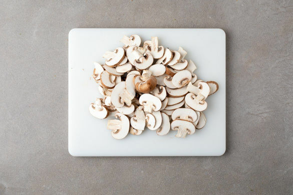Den Backofen auf 220°C (200°C Umluft) vorheizen. In einem Wasserkocher ca. 1L Wasser zum Kochen bringen. Die Pilze ggf. säubern und in dünne Scheiben schneiden.