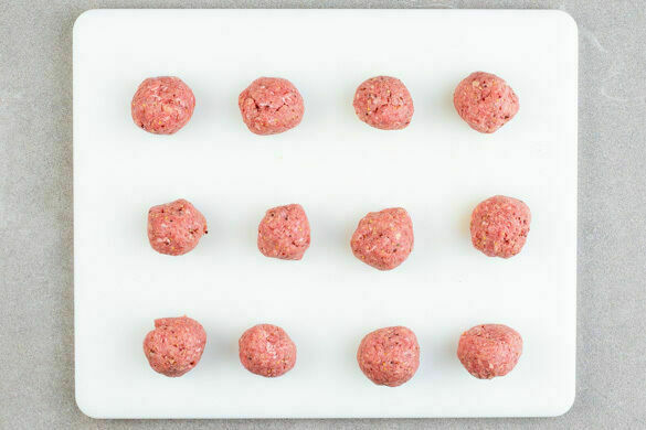 Das Hackfleisch mit 2EL Senf, dem Panko-Paniermehl, 4EL Sahne und je ½TL Salz und Pfeffer vermengen und alles gut durchkneten. In walnussgroße Bällchen formen.