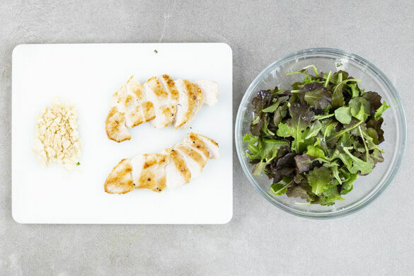 Dieser Salat ist ein absoluter Superstar, ein leuchtender Stern am kulinarischen Abendhimmel, denn er hat einfach alles, was so ein leckeres und vor allem gesundes Low-Carb-Festmahl haben muss: Zartes Bio-Hühnchen, lecker gebratene Champignons, aromatischer Blattsenf, frische Kräuter und ein hartgekochtes Ei versorgen dich mit reichlich Protein. Serviert wird das Ganze mit einem Klecks Joghurtdressing und Mandelblättchen.
